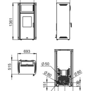 Estufa de leña Chopin 3V 8,9 kW – leños hasta 80 cm