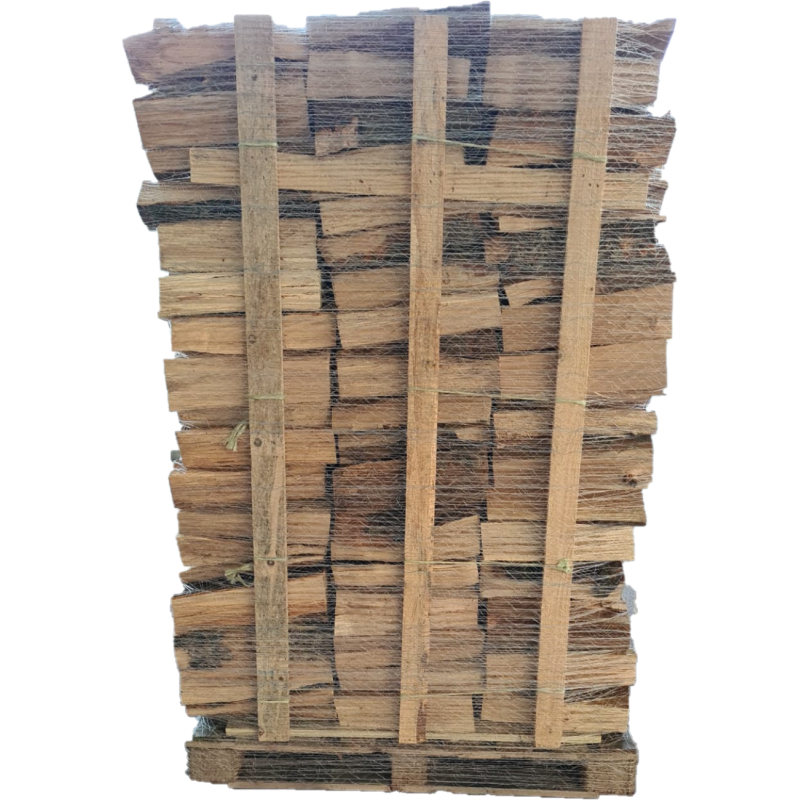 Presentación: Leña partida, apilada sobre palet/caja, lista para quemar.